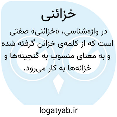 در واژه‌شناسی، «خزائنی» صفتی است که از کلمه‌ی خزائن گرفته شده و به معنای منسوب به گنجینه‌ها و خزانه‌ها به کار می‌رود. واژه‌ی خزائن جمع خزانه است و خزانه به محلی گفته می‌شود که مال، دارایی، اشیای قیمتی یا اسناد مهم در آن نگهداری می‌شود. بنابراین، هر چیز یا امری که به خزانه و گنجینه وابسته باشد، خزائنی نامیده می‌شود. این کلمه در متون تاریخی، ادبی، دینی و اقتصادی کاربرد دارد؛ برای مثال، در تاریخ پادشاهان، وقتی گفته می‌شود: «دارایی‌های خزائنی منتقل شد»، یعنی اموال مربوط به خزانه جابه‌جا یا مصرف شده است. همچنین در نوشتارهای اداری قدیم، از اصطلاحاتی مانند «دفاتر یا امور خزائنی» استفاده می‌شد که اشاره به حساب‌ها و املاک وابسته به خزانه داشت.