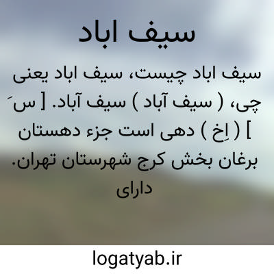 ( سیف آباد ) سیف آباد. [ س َ ] ( اِخ ) دهی است جزء دهستان برغان بخش کرج شهرستان تهران. دارای 163 تن سکنه. آب آن از رودخانه کردان. محصول آنجا غلات، چغندر قند، بنشن و لبنیات است. ( از فرهنگ جغرافیائی ای__ران ج 1 ).