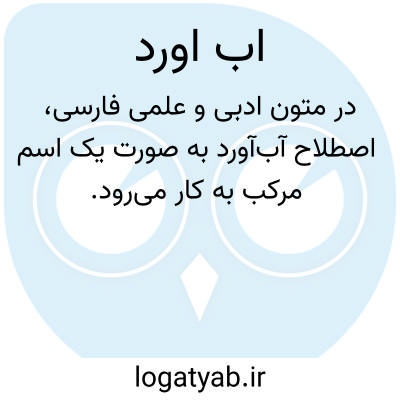 ( آب آورد ) ( اسم ) ۱ - آن چیز که آب آنرا بیاورد آب آورد. ۲ - خاشاک و جز آن که دریا یا رود یا سیل با خود آورد. یا چشم آب. چشمی که به بیماری آب مبتلا باشد.