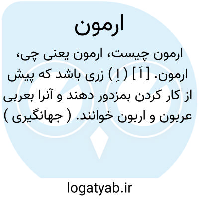 ارمون. [ اَ ] ( اِ ) زری باشد که پیش از کار کردن بمزدور دهند و آنرا بعربی عربون و اربون خوانند. ( جهانگیری ) ( برهان ). مزدی را گویند که پیش از کار کردن بگیرند یا بدهند. سیمی که پیش از کار از بابت مزد به مزدور دهند. ربون. پیش مزد. بیعانه که بعربی اربون گویند و ظاهراً اربون را بتصحیف ارمون خوانده اند. ( رشیدی ):