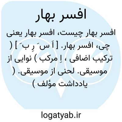 افسر بهار. [ اَ س َ رِ ب َ ] ( ترکیب اضافی، اِ مرکب ) نوایی از موسیقی. لحنی از موسیقی. ( یادداشت مؤلف ):