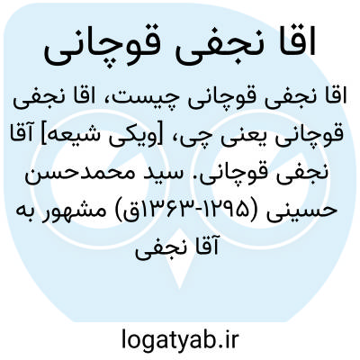 [ویکی فقه] آقانجفی قوچانی. آقا نَجَفیِ قوچانی، سیدمحمد حسن بن سیدمحمد نجفی (۱۲۹۵-۱۳۶۳ق/۱۸۷۸-۱۹۴۴م)، فقیه، حکیم و ادیب می باشد.