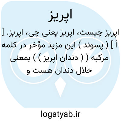اپریز. [ اَ ] ( پسوند ) این مزید مؤخر در کلمه مرکبه ( ( دندان اپریز ) ) بمعنی خلال دندان هست و معنی اپریز معلوم نیست و آنرا دندان اپریش و دندان پریش و دندان افریش نیز آورده اند.