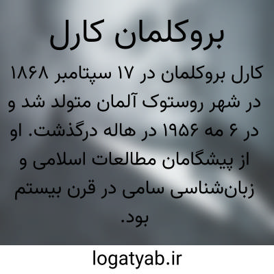 [ویکی نور] کارل بروکلمان خاورشناس مشهور آلمانی، در 17 سپتامبر 1868م در روستوک، از شهرهای آلمان، به دنیا آمد.