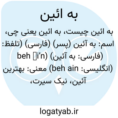 اسم: به آئین (پسر) (فارسی) (تلفظ: beh āi’n) (فارسی: به آئین) (انگلیسی: beh ain)
