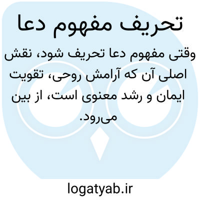 تحریف مفهوم دعا به معنای تغییر دادن یا کج‌فهمی در ماهیت اصلی دعا است. در این حالت، معنای واقعی و اصیل دعا که ارتباط صادقانه و خالصانه انسان با خداوند است، دچار انحراف می‌شود. چنین تحریفی ممکن است از ناآگاهی یا از غرض‌ورزی و سوءبرداشت ناشی گردد.