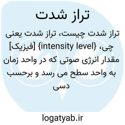 {intensity level} [فیزیک] مقدار انرژی صوتی که در واحد زمان به واحد سطح می رسد و برحسب دسی بل بیان می شود