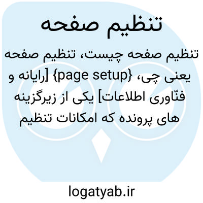 یکی از زیرگزینههای پرونده که امکانات تنظیم مشخصات اصلی صفحه از قبیل طول سطر و فاصلۀ بین سطرها را فراهم میکند.