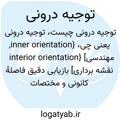 {inner orientation, interior orientation} [مهندسی نقشه برداری] بازیابی دقیق فاصلۀ کانونی و مختصات نقطۀ اصلی دوربین و مقادیر تابیدگی های شعاعی و مماسی عدسی