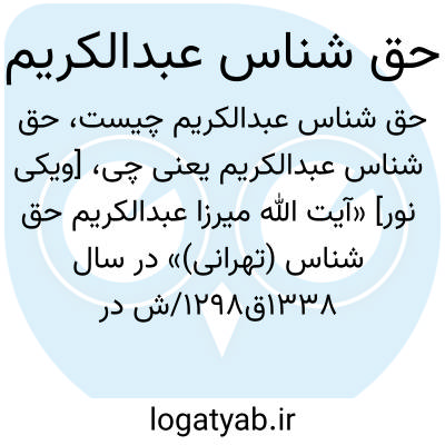 [ویکی نور] «آیت الله میرزا عبدالکریم حق شناس (تهرانی)» در سال 1338ق1298/ش در تهران، در خانواده ای مذهبی، دیده به جهان گشود.