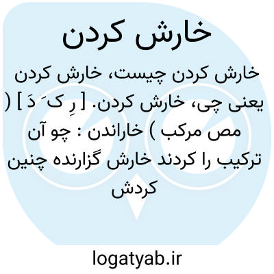 ( خارید خارد خواهد خارید بخار خارنده خاریده خارش ) ۱ - ( مصدر ) پوست بدن را با ناخن یا چیز دیگرچند بار مس کردن باری تسکین حس مخصوصی که از گزیدن شپش یا کیک یا چرکین بودن بدن یا بعلت بعضی بثورات حاصل شود. ۲ - ( مصدر ) خارش کردن عضو یا اعضایی از بدن: (( تنم میخارد ) ) یا تنش میخارد. میل بکتک خوردن دارد.