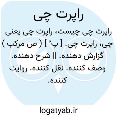 راپرت چی. [ پ ُ ] ( ص مرکب ) گزارش دهنده. || شرح دهنده. وصف کننده. نقل کننده. روایت کننده. حکایت کننده. داستان گوینده. قصه گوینده. بیان کننده. ( فرهنگ فرانسه به فارسی نفیسی ).