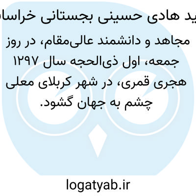 حجتالاسلام والمسلمین سید هادی حسینی بجستانی خراسانی، فقیه، مجاهد و دانشمند عالیمقام، در روز جمعه، اول ذیالحجه سال ۱۲۹۷ هجری قمری، در شهر کربلای معلی چشم به جهان گشود. ایشان فرزند ارشد سید میر علی حسینی هروی بجستانی خراسانی، از علمای نامدار و مشهور خراسان، بود که تقریباً در سال ۱۲۵۲ هجری قمری در بجستان دیده به جهان گشود. سید میر علی، پس از فراگیری مقدمات علوم دینی در مشهد مقدس، در سال ۱۲۶۱ هجری قمری عازم نجف اشرف شد و به مدت سی سال به تحصیل علوم دینی در آن حوزه سترگ پرداخت. در این دوره، او سطوح عالی و دروس خارج فقه و اصول را محضر استادان و مراجع بزرگی همچون شیخ مرتضی انصاری و میرزا محمد حسن شیرازی تلمذ نمود و موفق به نیل به درجه رفیع اجتهاد گشت.