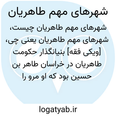 [ویکی فقه] بنیانگذار حکومت طاهریان در خراسان طاهر بن حسین بود که او مرو را مرکز حکومت خود قرار داد. پس از او پسرش طلحه به حکومت رسید. با مرگ طلحه، برادرش عبدالله بن طاهر مرکز حکومت را از مرو به نیشابور تغییر داد و از این زمان به بعد مرو ارزش و اعتبار خود را به عنوان مهمترین مرکز خراسان از دست داد. هرات یکی از چهار شهر بزرگ خراسان قدیم و از شهرهای مهم افغانستان امروز به حساب می آید. پوشنگ مهمترین ناحیه هرات که در غرب آن قرار داشت و شهری آباد بود. این مقاله در راستای بررسی حکومت طاهریان به بررسی شهرهای مهم طاهریان می پردازد.