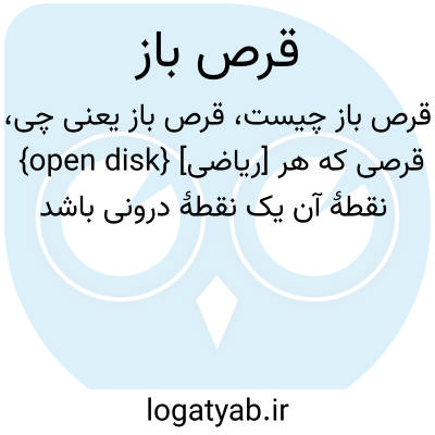 {open disk} [ریاضی] قرصی که هر نقطۀ آن یک نقطۀ درونی باشد