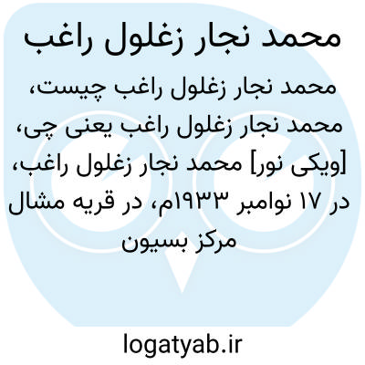 [ویکی نور] محمد نجار زغلول راغب، در 17 نوامبر 1933م، در قریه مشال مرکز بسیون در استان غربیه متولد شد. استان غربیه در مصر قرار دارد.