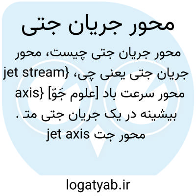 {jet stream axis} [علوم جَوّ] محور سرعت باد بیشینه در یک جریان جتی متـ. محور جت jet axis