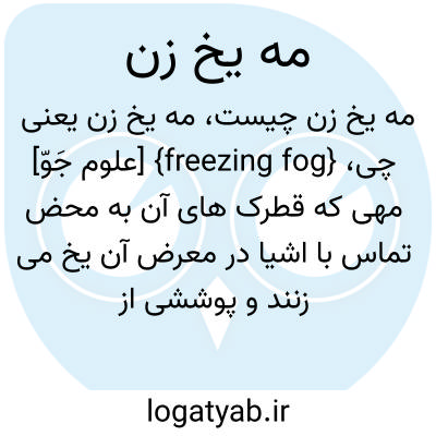 {freezing fog} [علوم جَوّ] مهی که قطرک های آن به محض تماس با اشیا در معرض آن یخ می زنند و پوششی از یخ مات یا یخ شیشه تشکیل می دهند