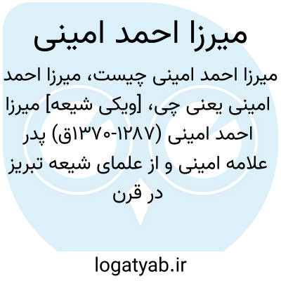 [ویکی شیعه] میرزا احمد امینی (۱۲۸۷-۱۳۷۰ق) پدر علامه امینی و از علمای شیعه تبریز در قرن چهاردهم قمری بود. وی به استنساخ کتب علاقه داشت و کتاب هایی مانند صفات الشیعه را رونویسی کرد. آقا بزرگ از تعلیقه وی بر مکاسب نام برده است.