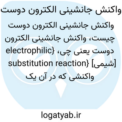 {electrophilic substitution reaction} [شیمی] واکنشی که در آن یک الکترون دوست با جابه جا کردن گروه ترک کننده به اتم کربن در یک مولکول متصل می شود