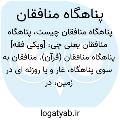 [ویکی فقه] پناهگاه منافقان (قرآن). منافقان به سوی پناهگاه، غار و یا روزنه ای در زمین، در صورت یافتن آنها جهت اظهار کفر خود شتاب می کنند.