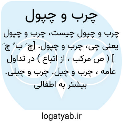 چرب و چپول. [چ َ ب ُ چ َ ] ( ص مرکب، از اتباع ) در تداول عامه، چرب و چیل. چرب و چیلی. بیشتر به اطفالی گویند که غذای چرب خورده، لب ها و اطراف دهان را به چربی بسیار آلوده اند. به کودکی طعام خورده و اطراف دهان و نوک بینی به چربو و طعام آلوده گویند. رجوع به چرب و چیل شود.