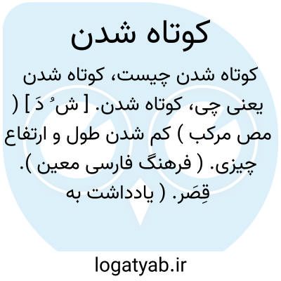 ۱ - کم شدن طول و ارتفاع چیزی. ۲ - کاسته شدن. ۳ - قطع شدن. یا کوتاه شدن دست کسی از چیزی. دسترس نداشتن بدان از آن پس: و دست تعرض متغلبان و ستمکاران از دامن روزگار ضعیفان و عاجزان بکلی کوتاه شود. یا کوتاه شدن زبان. خاموش شدن.