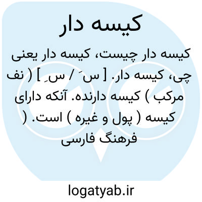 ( صفت ) ۱ - آنکه دارای کیسه ( پول و غیره ) است. ۲ - شخصی که چیز ها را بوقت ارزانی بخرد و نگاهدارد و در ایام گرانی بفرشد محتکر: کفر و دین را نیست در بازار عشق کیسه داری چون خم گیسوی تو. ( سنائی ) ۳ - جانوری از راست. کیسه داران. یا کیسه داران. جمع کیسه دار راسته ایست از پستانداران پست جزو دست. بی جفتان که جنس ماد. آن در حالت بارداری فاقد جفت است و بنابراین جنین در رحم میتواند تغذیه کند لذا بمحض آنکه مدت کمی ( در حدود یک هفته ) از لقاح تخمک گذشت و جنین هنوز در دور. اولی. نمو خود میباشد و تقریبا بانداز. لوبیا یی است از رحم خارج میشود و مادر جنین را با پوز. خود برداشته در کیسه ای که در پایین شکمش دارد قرار میدهد و بقی. پرورش جنین در این کیسه انجام میشود و هم در آنجا بعلت و جود غده های مترشح شیر تغذیه و رشد میکند. وجه تسمی. این راسته از پستانداران بواسط. وجود همین کیسه است که در حکم رحم ثانی برای نوزاد میباشد. بهمین جهت این پستانداران را جانوران دو رحمی نیز گفته اند. کانگورو ساریگ دازیور جزو جانوران این راسته اند.