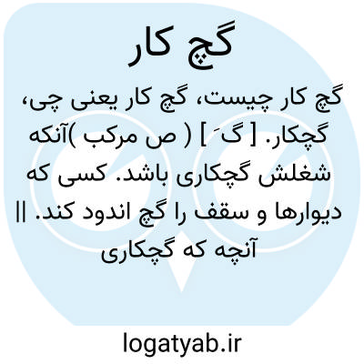۱ - ( صفت ) کسی که دیوار ها و سقفها را گچ اندود کند. توضیح بنابر دو قسم است: سفت کار و گچ کار. سفت کار کسی است که بیشتر کارش چیدن مجردی و آجرچینی و شفته ریزی و بر آوردن دیوار و پوشانیدن سقف و نظایر آنست در صورتیکه کار گچکار بیشتر نازک کاری و کارهای ظریف و کم زور است از قبیل سفید کاری و نظایر آن. گاهی گچ کاران فقط سفید کاری میکنند: بگچ کاریش هر که پرداخته گچ از نقر. صبحدم ساخته. ( طغرا ) ۲ - آنچه که بگچ اندوده شده آنچه که گچ کاری شده: مصهرج حوض گچ کار.