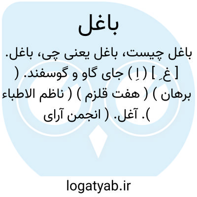 باغل. [ غ ِ ] ( اِ ) جای گاو و گوسفند. ( برهان ) ( هفت قلزم ) ( ناظم الاطباء ). آغل. ( انجمن آرای ناصری ) ( آنندراج ) شبگاه. و رجوع به آغل شود.