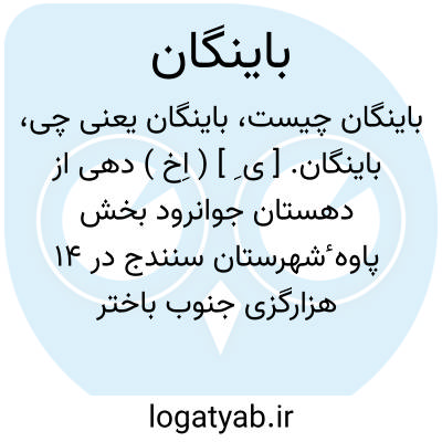 باینگان. [ ی ِ ] ( اِخ ) دهی از دهستان جوانرود بخش پاوه ٔشهرستان سنندج در 14 هزارگزی جنوب باختر پاوه. سکنه آن 538 تن، آب آن از چشمه. محصول آن غلات، توتون. لبنیات و میوه است. ( از فرهنگ جغرافیائی ایران ج 5 ).
