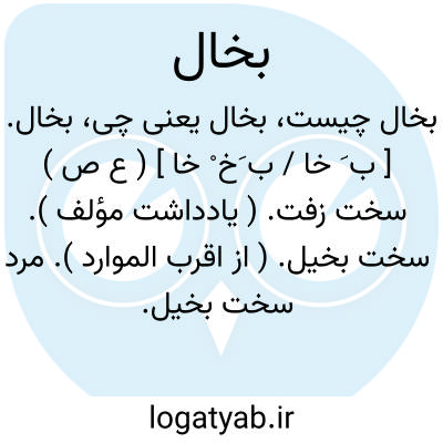 بخال. [ ب َ خا / ب َخ ْ خا ] ( ع ص ) سخت زفت. ( یادداشت مؤلف ). سخت بخیل. ( از اقرب الموارد ). مرد سخت بخیل. ( مهذب الاسماء ) ( ناظم الاطباء ). مرد زفت سخت بخیل.