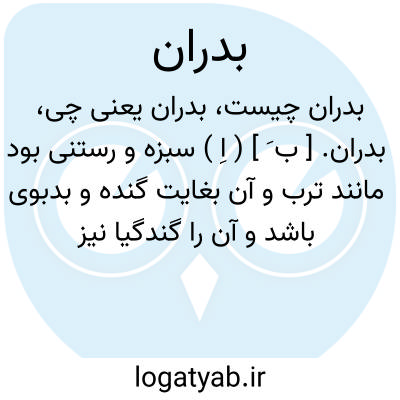 گیاهی مانند ترب و بسیار بدبو، گندگیاه: عیب بدران مکن و هرچه بُوَد نیکو بین / که به صحرای جهان هیچ نروید بیکار (بسحاق اطعمه: مجمع الفرس: بدران ).