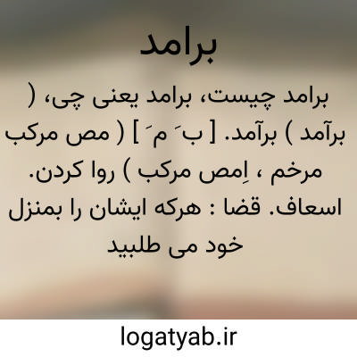 ( برآمد ) برآمد. [ ب َ م َ ] ( مص مرکب مرخم، اِمص مرکب ) روا کردن. اسعاف. قضا: هرکه ایشان را بمنزل خود می طلبید بر متابعت سنت رسول ( ص ) و بجهت برآمد کار آن نیازمند میرفتند. ( انیس الطالبین ). رجوع به برآمدن شود.