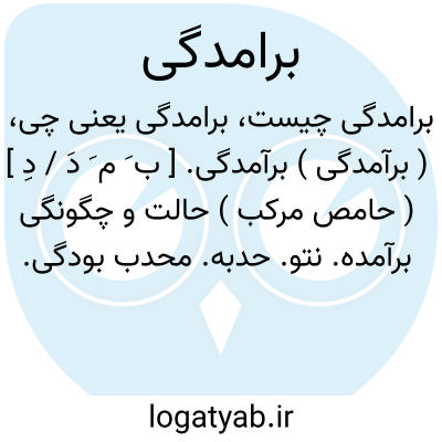 ( برآمدگی ) برآمدگی. [ ب َ م َ دَ / دِ ] ( حامص مرکب ) حالت و چگونگی برآمده. نتو. حدبه. محدب بودگی. برجستگی. || بلندی و ارتفاع در جایی یا عضوی. || آماس. رجوع به برآمدن و برآمد شود.