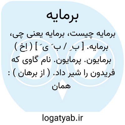 💡 بَرمایَه (پرمایه) که به ندرت با ضمّ نخست و به صورت پُرمایَه نیز خوانده شده‌است، در شاهنامه نام یکی از برادران فریدون است. بر اساس روایت فردوسی، برمایه و کیانوش، برادران مهتر فریدون بودند که به فرمان او آهنگران را گرد آوردند تا گرز گاوسر را بسازند. آنگاه دو برادر نیکخواه با فریدون برای برانداختن ضحاک تازی همراه شدند.