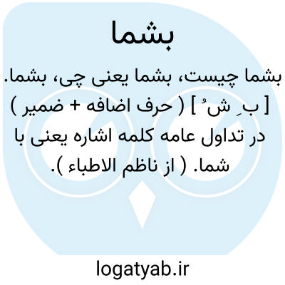 بشما. [ ب ِ ش ُ ] ( حرف اضافه + ضمیر ) در تداول عامه کلمه اشاره یعنی با شما. ( از ناظم الاطباء ).