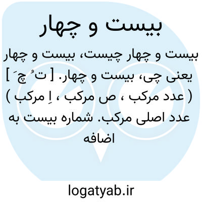 بیست و چهار. [ ت ُ چ َ ] ( عدد مرکب، ص مرکب، اِ مرکب ) عدد اصلی مرکب. شماره بیست به اضافه چهار. عدد قبل از بیست وپنج و بعد از بیست وسه. اربعة و عشرون: