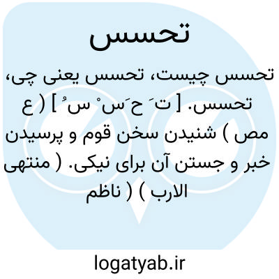 تحسس. [ ت َ ح َس ْ س ُ ] ( ع مص ) شنیدن سخن قوم و پرسیدن خبر و جستن آن برای نیکی. ( منتهی الارب ) ( ناظم الاطباء ) ( اقرب الموارد ) ( قطر المحیط ). و گفته شده است که تحسس مانند تسمع و تبصر است. یقال: اخرج فتحسس لنا. و با جیم ( تجسس ) در شر استعمال شود و ابوعبید گوید: تحسست الخبر و تحسیت [ یکی است ]. ( اقرب الموارد ). || تحسس از چیزی؛ خبر یافتن از آن. ( اقرب الموارد ). تعریف و تطلب آن با حواس. ( قطر المحیط ). || جستجو کردن و خبر کردن وخبر پرسیدن. ( آنندراج ). تحسس از؛ آگهی یافتن از خبرآن. ( قطر المحیط ). خبر خواستن. ( ترجمان جرجانی ترتیب عادل بن علی ): یا بنی اذهبوا فتحسسوا من یوسف و اخیه. ( قرآن 87/12 ). و تحسس در آیه فوق بهمه معانی یادشده تفسیر گردیده است. ( اقرب الموارد ).