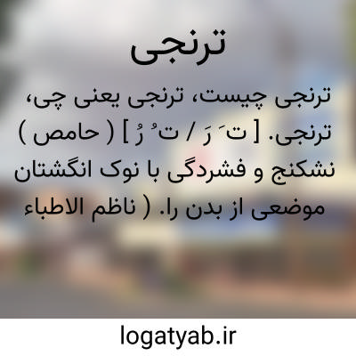 ترنجی. [ ت َ رَ / ت ُ رُ ] ( حامص ) نشکنج و فشردگی با نوک انگشتان موضعی از بدن را. ( ناظم الاطباء ) ( از لسان العجم شعوری ج 1 ورق 310 ب ). نشگون. وشگون. نیشگون.