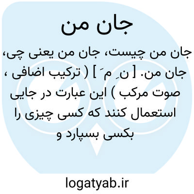 جان من. [ ن ِ م َ ] ( ترکیب اضافی، صوت مرکب ) این عبارت در جایی استعمال کنند که کسی چیزی را بکسی بسپارد و سفارش نماید که این را نیکو دار و محافظت کن. ( آنندراج ):