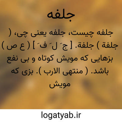 ( جلفة ) جلفة. [ ج َ ل َ ف َ ] ( ع ص ) بزهایی که مویش کوتاه و بی نفع باشد. ( منتهی الارب ). بزی که مویش کوتاه و بی نفع باشد. ( ناظم الاطباء ).