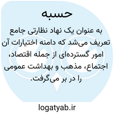 [ویکی شیعه] حِسْبَه، از تشکیلات اداری و دینی در حکومت های اسلامی ناظر بر امور اقتصادی، اجتماعی، مذهبی و بهداشتی.