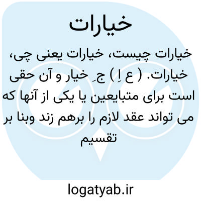 خیارات. ( ع اِ ) ج ِ خیار و آن حقی است برای متبایعین یا یکی از آنها که می تواند عقد لازم را برهم زند وبنا بر تقسیم موجود در کتاب حقوق مدنی سیدحسن امامی ج 1 ص 475 خیارات بر دو قسمند: اول خیارات مختص؛ دوم خیارات مشترک. خیارات مختص خیاراتی اند که فقط در عقدبیع یافت میشوند و در عقود لازم دیگر موجود نخواهند بود و آنها طبق ذیل ماده 456 قانون مدنی ایران عبارتند از: خیار مجلس؛ خیار حیوان؛ خیار تأخیر ثمن. چه ماده 456 می گوید تمام انواع خیار در جمیع معاملات لازمه ممکن است موجود باشد مگر خیار مجلس و حیوان و تأخیر ثمن که مخصوص بیع است. خیارات مشترک خیاراتی اند که اختصاص به بیع ندارند و ممکن است در هر یک از معاملات لازمه یافت شود. ( حقوق مدنی امامی ج 1 ص 485 ). خیارات مشترک با توجه ماده 396 قانون مدنی عبارتند از: 1 - خیار تخلف شرط. 2 - خیار رؤیت و تخلف وصف. 3 - خیار غبن. 4 - خیار عیب. 5 - خیار تدلیس. 6 - خیار تبعض صفقه. 7 - خیار شرط. 8 - خیار تفلیس ( ماده 380 ). و رجوع به هر یک از این ترکیبات در ذیل خیارشود.