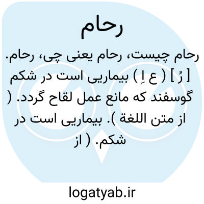 رحام. [ رُ ] ( ع اِ ) بیماریی است در شکم گوسفند که مانع عمل لقاح گردد. ( از متن اللغة ). بیماریی است در شکم. ( از اقرب الموارد ):