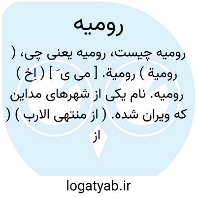 ( رومیة ) رومیة. [ می ی َ ] ( اِخ ) رومیه. نام یکی از شهرهای مداین که ویران شده. ( از منتهی الارب ) ( از آنندراج ) ( ناظم الاطباء ). رومیة المدائن. در فارسی رومیه گویند. ( یادداشت مؤلف ). رومیه یا رومیه مدائن، گویند آنرا اسکندر ذوالقرنین کرد به صورت انطاکیه. ( ابن خلکان در ترجمه حال ابومسلم مروزی ). نام شهری که نوشیروان به نمونه انطاکیه بر ساحل دریای روم بنا کرده، میان وی و قسطنطنیه یکسال راه است. ( شرفنامه منیری ) ( انجمن آرا ) ( از برهان ):