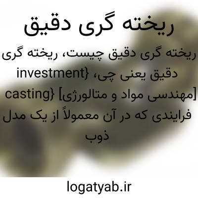 {investment casting} [مهندسی مواد و متالورژی] فرایندی که در آن معمولاً از یک مدل ذوب شونده یا تبخیرشونده استفاده می شود؛ مدل مومی با سرامیک پوشش داده می شود و قطعات تولیدی ابعاد و سطوح مطلوبی دارند