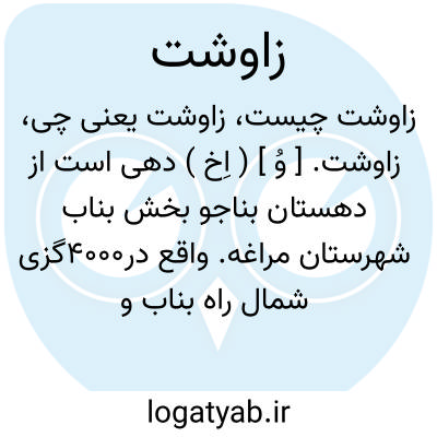 زاوشت. [ وُ ] ( اِخ ) دهی است از دهستان بناجو بخش بناب شهرستان مراغه. واقع در4000گزی شمال راه بناب و 3000گزی باختر راه میاندوآب به دهخوارقان. در منطقه جلگه، معتدل و مالاریائی. سکنه آن 1124 تن اند که بزبان ترکی تکلم میکنند. آب آن از رودخانه صوفی چای و چاه. محصول آن غلات، کشمش، بادام و کرچک است. ( از فرهنگ جغرافیائی ایران ج 4 ).