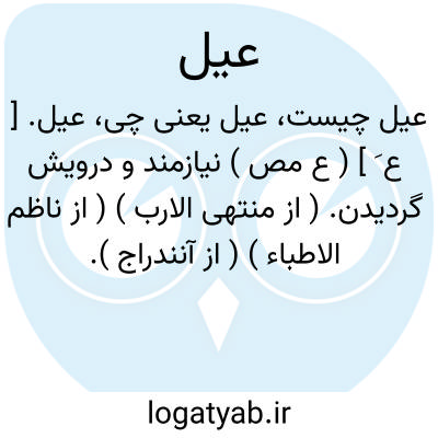 عیل. [ ع َ ] ( ع مص ) نیازمند و درویش گردیدن. ( از منتهی الارب ) ( از ناظم الاطباء ) ( از آنندراج ). فقیر و محتاج شدن. ( از اقرب الموارد ). عَیلة. عُیول. مَعیل. رجوع به عیلة و عیول و معیل شود. || حاجتمند گردانیدن کسی را و درمانده نمودن. ( از منتهی الارب ) ( از ناظم الاطباء ). محتاج و عاجز کردن چیزی کسی را. ( از اقرب الموارد ). مَعیل. رجوع به معیل شود. و از آن است:«عیل صبری ». || خرامان و خمیده و نازان رفتن. ( از منتهی الارب ) ( از ناظم الاطباء ). خرامان رفتن اسب و مرد و جز آن. ( آنندراج ). خم شدن و خرامیدن و تبختر کردن هنگام راه رفتن. ( از اقرب الموارد ). مَعیل. رجوع به معیل شود. || ندانستن شخص، که گم شده به کجا رفته و در چه جا بجوید او را. ( از ناظم الاطباء ). ندانستن چوپان که «ضالة» را کجا بیابد. ( از اقرب الموارد ) ( از منتهی الارب ). مَعیل. رجوع به معیل شود. || رفتن. ( از منتهی الارب ). سفر کردن و رفتن. ( از ناظم الاطباء ). رفتن و گشتن در زمین.( از اقرب الموارد ). عیول [ ع ُ / ع َ ]. رجوع به عیول شود. || شکار جستن پلنگ. ( از منتهی الارب ) ( از ناظم الاطباء ). || عیالمند گردیدن. ( از ناظم الاطباء ). بسیار گشتن عیال شخص. ( از اقرب الموارد از تاج ). || کم کردن ترازو، و یا زیاد شدن آن. ( از ناظم الاطباء ). گذشتن و یا زیاد کردن ترازو. ( از اقرب الموارد از تاج ). || جور کردن و از حق و راستی میل نمودن. ( از ناظم الاطباء ).