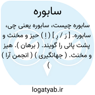 سابوره. [ رَ / رِ ] ( اِ ) حیز و مخنث و پشت پائی را گویند. ( برهان ). هیز و مخنث. ( جهانگیری ) ( انجمن آرا ) ( آنندراج ). بمعنی سبوره. ( رشیدی ). امرد.بی ریش. بی ننگ. پشت پا. تاز. سبوره. کنده. مأبون.